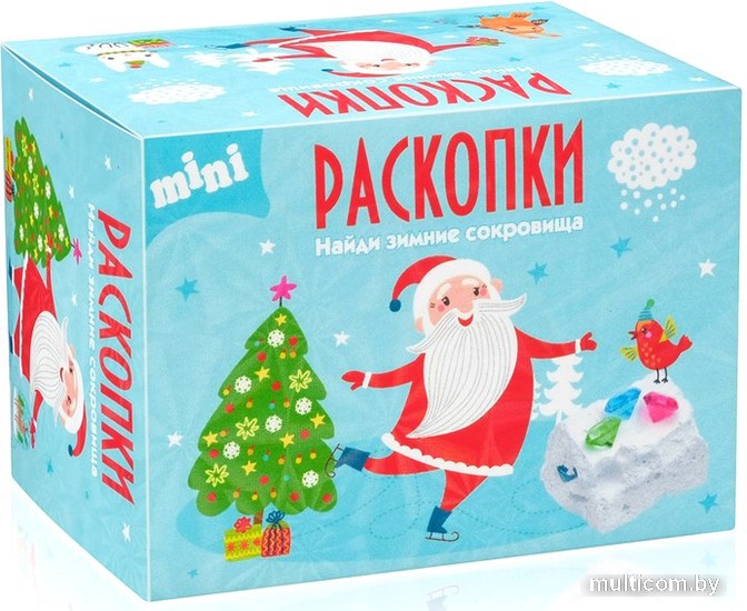 | Информация | Под Новый Год случаются разные сюрпризы! Какие ожидают вас в специальном подарочном наборе для проведения раскопок? Давайте узнаем! Археологическая игра оформлена в праздничном стиле, внутри — грунт с красивыми зимними сокровищами. Возьмите инструменты археолога и попробуйте извлечь все драгоценности, не пропустив ни одной. Для того чтобы проводить раскопки было проще, рекомендуем смочить брусок водой. |