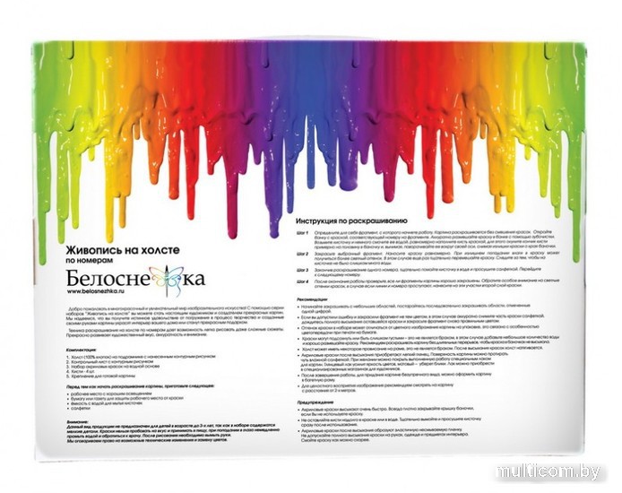 | Комплектация | контрольный лист, холст, краски, кисти (4 шт.), крепление, листовка о художнике |