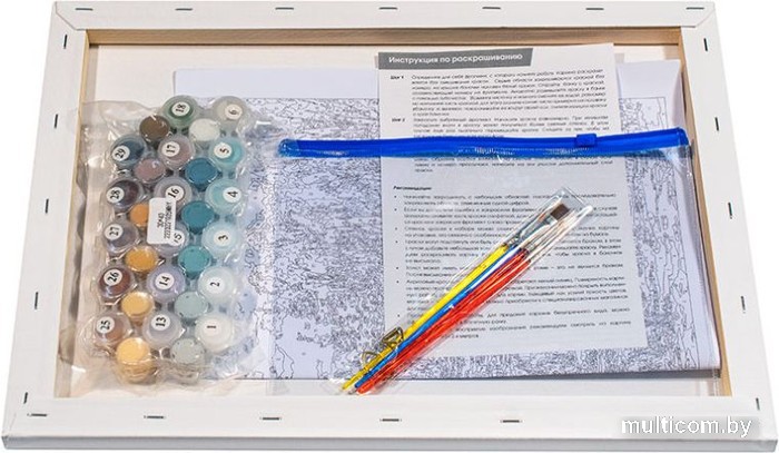 | Комплектация | контрольный лист, холст, краски, кисти (4 шт.), крепление, пакет |