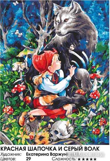 | Информация | ? Отдохните от повседневности и добавьте в свою жизнь немного волшебства с картиной "Белоснежка, Красная шапочка и серый волк 952-AS". ? Возьмите в руки кисти, краски и раскрасьте сюжет с необычной интерпретацией сказочного сюжета от художника Екатерины Варжунтович. |