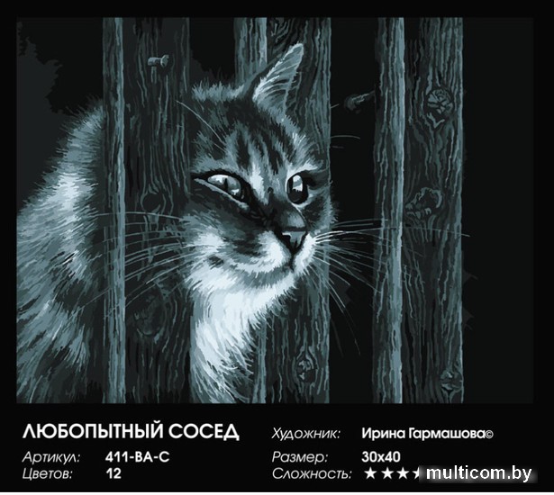 | Комплектация | контрольный лист, холст, краски (акриловые), кисти (4 шт.), крепление, листовка о художнике |