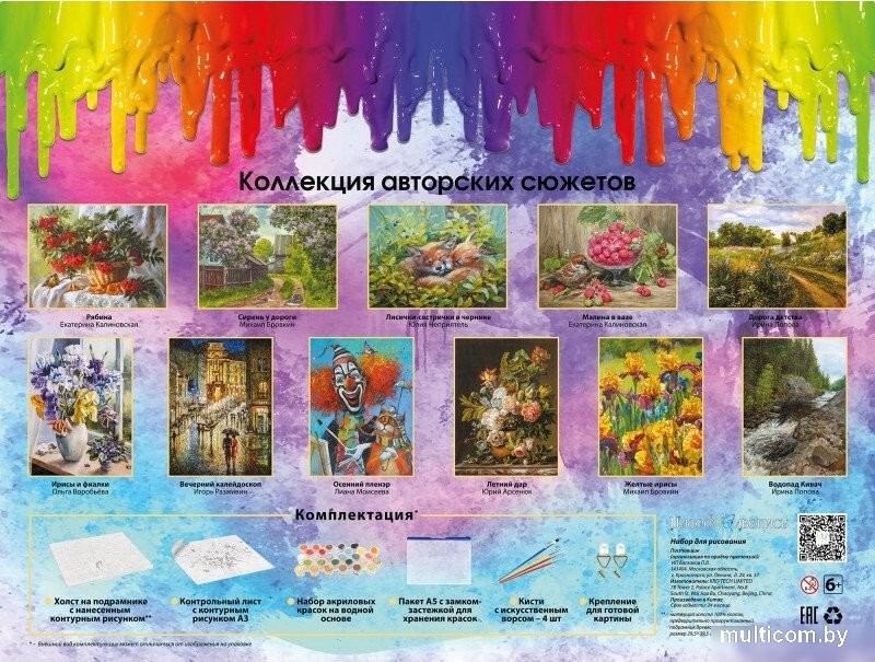 | Комплектация | контрольный лист, холст, краски (акриловые), кисти (4 шт), крепление |
