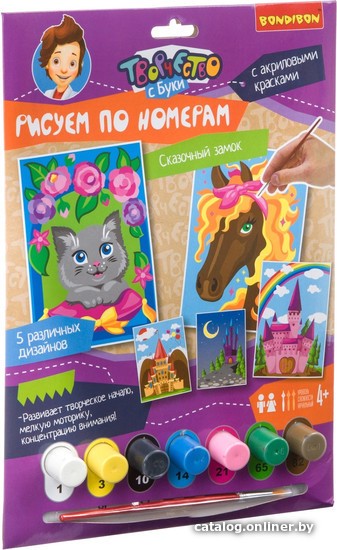 | Информация | Ваш ребенок любит рисовать, но уже "вырос" из обычных раскрасок? Тогда подарите ему возможность почувствовать себя настоящим художником с набором от Bondibon "Рисуем по номерам"! В нем целых 5 иллюстраций. |