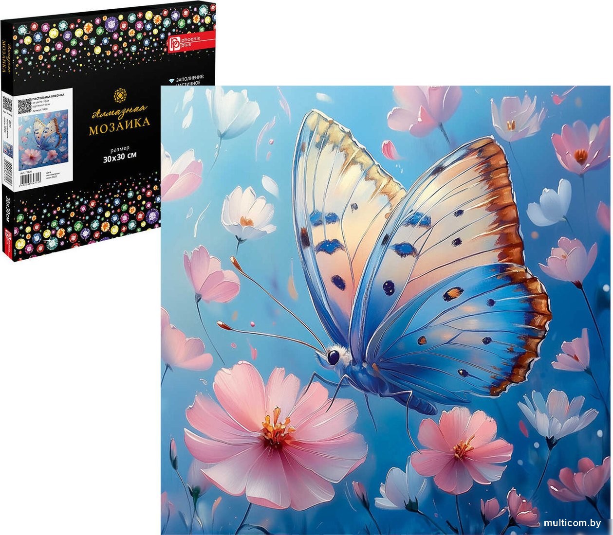| Комплектация | холст с клеевым слоем, набор страз, стилус, лоток для страз, силиконовый гель, клей, подвесы для подрамника, пинцет, схема, пакеты с zip-молнией, подрамник |
