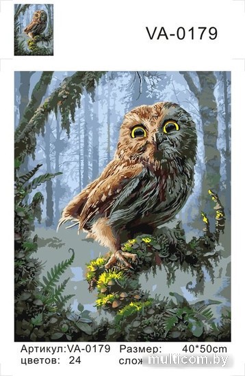 | Комплектация | контрольный лист; холст (натянутый на подрамник); краски (акриловые под номерами); кисти (3 шт); крепление (держатель для подвешивания на стену) |