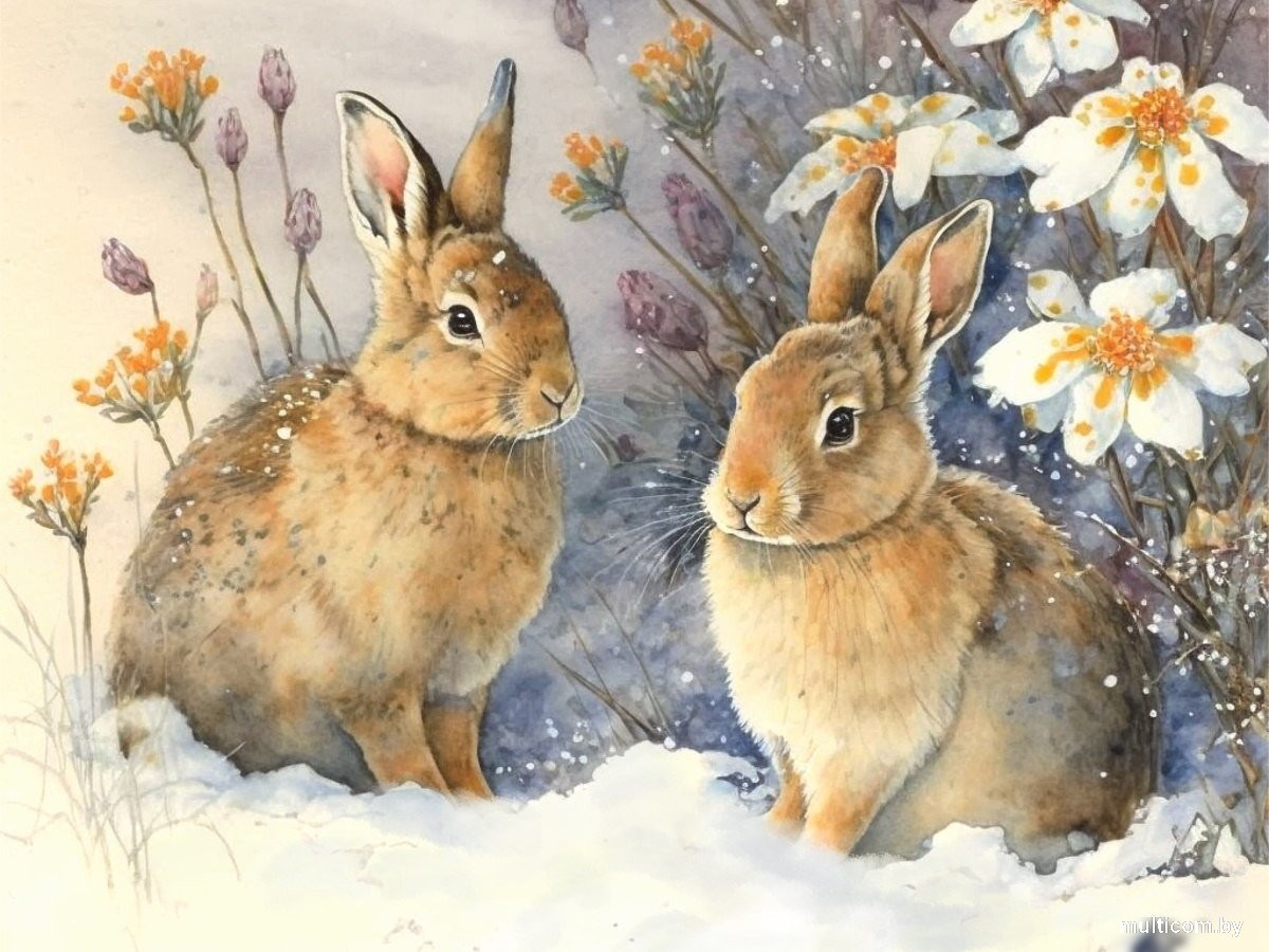 Рыжий кот Зайцы на снегу Х-7530