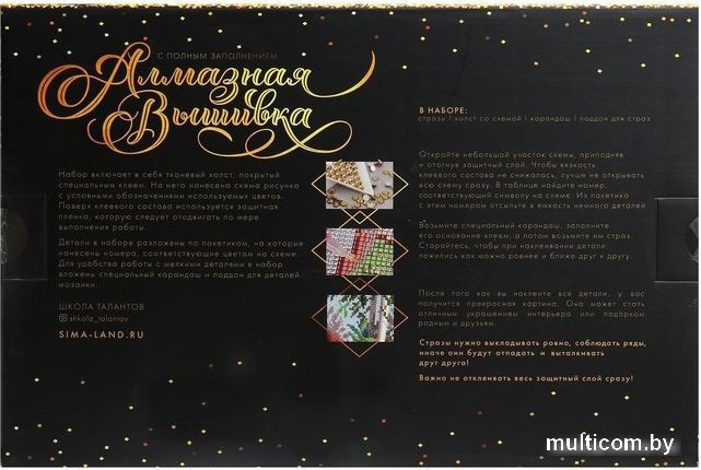 | Комплектация | набор страз, лоток для страз, стилус, основа для картины, клеевая подушка |