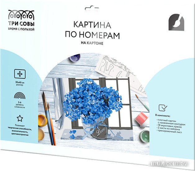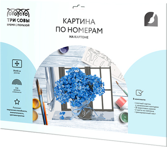 | Комплектация | • плотный картон с тиснением под холст размером 30х40 с нанесенным контуром, пронумерованный в соответствии с номерами красок. Технология точной разбивки сюжета картины на разные цветовые оттенки гарантируют правильность исполнения полотна; • 18 акриловых красок на водной основе в пронумерованных баночках. Краски с высокой укрывистостью; • 2 кисти из эластичного нейлонового волокна; • тренировочный лист. |