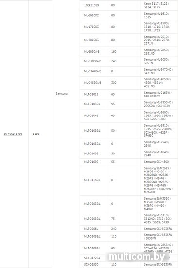 | Совместимость с принтерами | Samsung ML-2160, Samsung ML-2165, Samsung SCX-3400 |