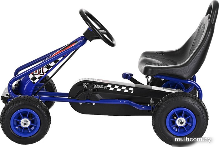 | Информация | Педальный картинг - это прекрасное сочетание велосипеда и автомобиля. Машинка приводится в движение вращением педалей, может ездить вперед и назад. Достаточно устойчив, чтобы не опрокинуться на повороте. Современный спортивный внешний вид. Картинг вырабатывает у ребенка навыки вождения. Особенности: - железная рама; - педальный картинг с цепной передачей; - ручной тормоз; - пневматические (надувные) колёса (D 22 см); - спортивное рулевое колесо (D 21 см); - рулевая и колесные оси металлические; - удобное регулируемое сидение - 2 положения: расстояние от сиденья до педали в нижнем положении: 1 положение - 28 см, 2 положение - 31 см |