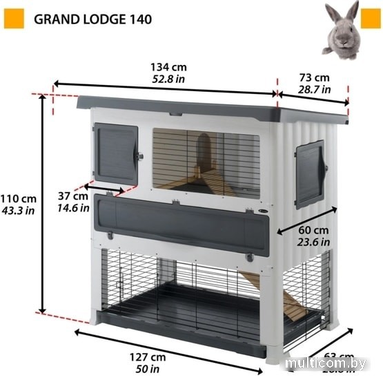 | Информация | Это топовая модель клеток для кроликов линии Grand Lodge!Клетки Grand Lodge 120 и 140 Plus станут идеальным домом для активных кроликов. Эти пластиковые клетки имеют очень прочную структуру со слегка наклонной крышей и закругленными внешними контурами. Выпускается одного цвета с темно-серыми комплектующими. Клетка Grand Lodge Plus - это настоящий двухэтажный дом! Верхний этаж идеально подходит для сна и оборудован уютным домиком с деревянными элементами и лесенкой. Нижняя часть может быть использована как площадка для игр, еды и питья. Благодаря удобной открывающейся дверке ваш питомец сможет выходить из клетки и гулять по дому, на террасе или саду.Клетки Grand Lodge 120 и 140 Plus идут в комплекте с аксессуарами: деревянные лесенки, поилка, кормушка для сена и пластиковая миска.Дополнительно вы можете приобрести защитный валик из ПВХ или изоляционный комплект для крыши, идеально защищающий от любых неблагоприятных климатических условий. |