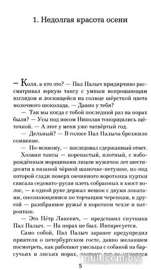 | Информация | ? Новая книга Павла Крусанова, автора «Укуса ангела», «Американской дырки», «Мёртвого языка» и других не менее неожиданных и обсуждаемых сочинений, на этот раз об охоте. ? Но не был бы Крусанов Крусановым, если бы ограничился банальным изложением охотничьих историй о походах на водоплавающую и боровую дичь. ? Рассказано об этом настолько сочно, ярко и со знанием дела, что ты будто бы сам, как в компьютерной имитации, влезаешь в болотные сапоги героя и чавкаешь по болотным хлябям в ожидании счастливого выстрела. ? География этой книги — не только Псковщина в окрестностях Новоржева. ? Здесь есть и перуанская сельва с ее тайнами и ночными страхами. ? Есть и много других дорог, по которым ведет нас автор, погружая в сложный, подчас непредсказуемый мир внутреннего «я» человека. ? В книге есть магия, потому что, как сказал автор в одном из интервью: «Литература — не просто игра в слова и смыслы, она наследница вербальной магии, магии заклятия. |