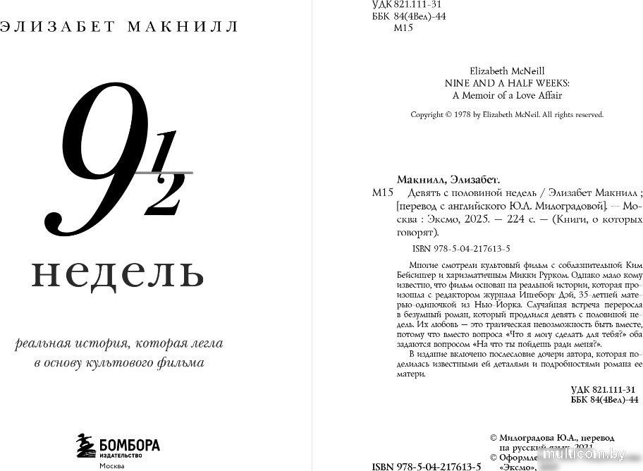 | Информация | - Днем она была свободной и самостоятельной, уверенно справляясь с повседневными делами. Но ночью её жизнь менялась: другой человек полностью контролировал её, включая самые сокровенные моменты. Это было невероятно захватывающе. - Их случайная встреча вскоре перерастает в страстный роман, который продлится всего девять с половиной недель. Он открывает ей двери в новый мир, побуждая к безумным поступкам. Она с радостью подчиняется его желаниям, находя в этом истинное наслаждение. - В этой игре нет места для компромиссов: только абсолютная власть одного над другим и один важный вопрос: «Как далеко ты готова зайти?» - Погрузитесь в эту историю о страсти, контроле и безумии, где каждый момент наполнен напряжением и ожиданием. |