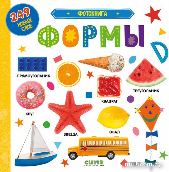 | Информация | ? Интерактивная книга CLEVER Первые знания - отличный способ познакомить малышей с различными формами. ? В ней есть задания и реалистичные фотографии, а названия предметов подписаны, что поможет развить речь и словарный запас у детей. ? Считайте предметы, учите формы и цвета с удовольствием! |