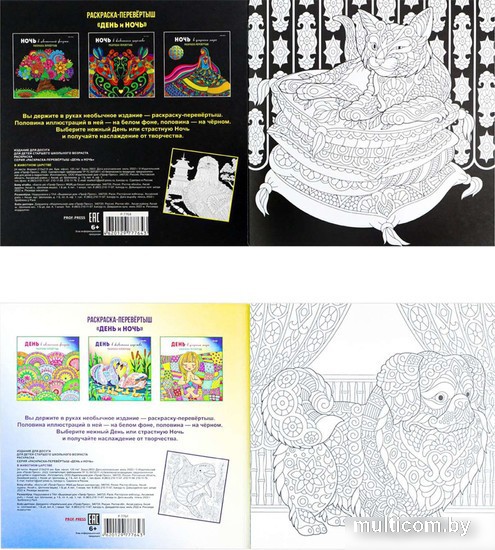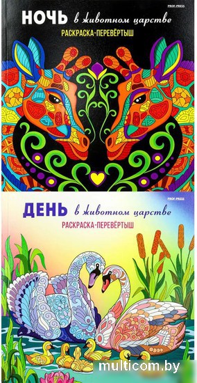 | Информация | ? Раскраска-перевёртыш "В животном царстве" представляет собой необычное издание. ? Половина иллюстраций в раскраске на белом фоне, а другая половина на чёрном. ? Выбор для творчества — нежный день или страстная ночь — зависит от настроения. ?? Серия адресована взрослым и подросткам. ? Обложка выполнена из целлюлозного картона с дополнительной обработкой "твин-лак". |