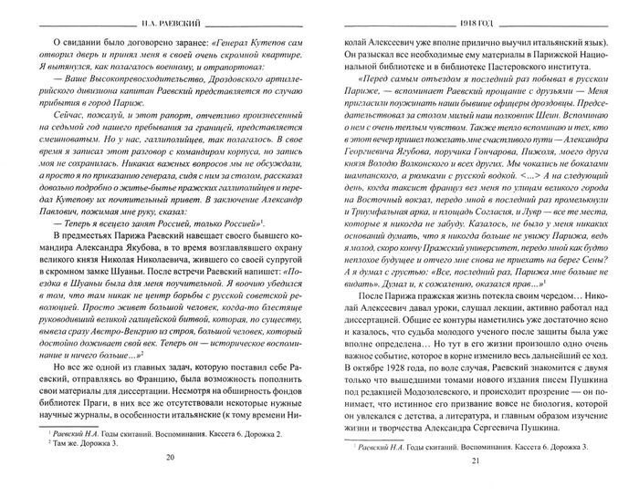 | Информация | Воспоминания Николая Алексеевича Раевского (1894–1988) рассказывают о событиях 1918 года на Украине. Автор мемуаров — капитан белой армии, биолог, писатель-пушкинист, эмигрировавший в составе Русской армии генерала П.Н. Врангеля. В своих мемуарах Николай Алексеевич повествует нам, как в годы Гражданской войны оказался в составе гетманской армии и какие испытания выпали на его долю. Книга издается в год 125-летия со дня рождения Н.А. Раевского. |