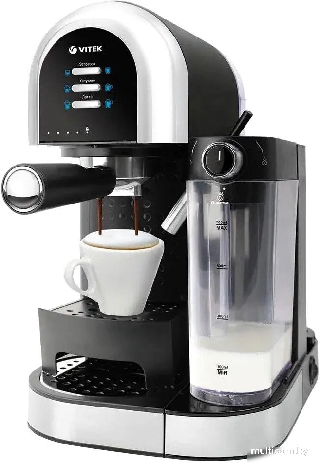 | Информация | - Элегантная кофеварка VT-1525 c итальянской помпой ULKA – это истинный подарок для всех ценителей хорошего кофе. - Она создает давление 15 бар и автоматически приготовит любой напиток на ваше усмотрение: латте, эспрессо или капучино. Вам нужно только добавить молотый кофе в рожок! - При помощи капучинатора вы получите восхитительную молочную пенку для приготовления любимых напитков. Достаточно налить молоко в резервуар для молока, выставить нужный уровень пенки в зависимости от напитка, нажать на кнопку и кофеварка приготовит ароматную чашку латте или капучино. - Одновременно с этим Вы можете выбрать объем напитка и приготовить одну или две порции. - Кофеварка также оснащена термоблоком: он не только обеспечивает безупречный вкус и быстроту приготовления, но и уменьшает затраты на электроэнергию при использовании прибора. - |