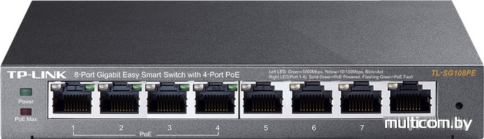 | Информация | TP-Link TL-SG108PE – Easy Smart гигабитный 8-портовый коммутатор с 4 портами PoE Обеспечивает мониторинг сети, приоритезацию трафика и функции VLAN. Простая настройка сети благодаря поддержке Plug-and-Play. Простая настройка с помощью веб-интерфейса и утилиты настройки Easy Smart. |