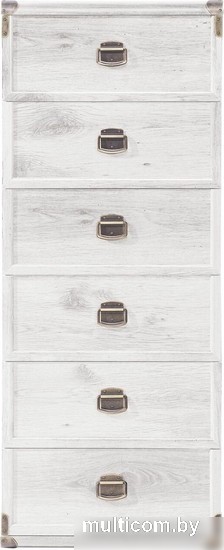 | Информация | - Удобный комод с 6 выдвижными ящиками на металлических роликовых направляющих. - Оригинальные ручки. - Металлические накладки на уголках. |