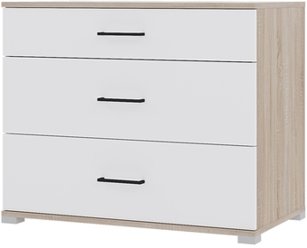 | Информация | Минималистичная модель функционального комода Victor в расцветке дуб сонома - белый отлично впишется в интерьер спальни или жилой комнаты. Комод изготовлен из высококачественной ЛДСП. Система хранения предусматривает три выдвижных ящика на роликовых направляющих. |