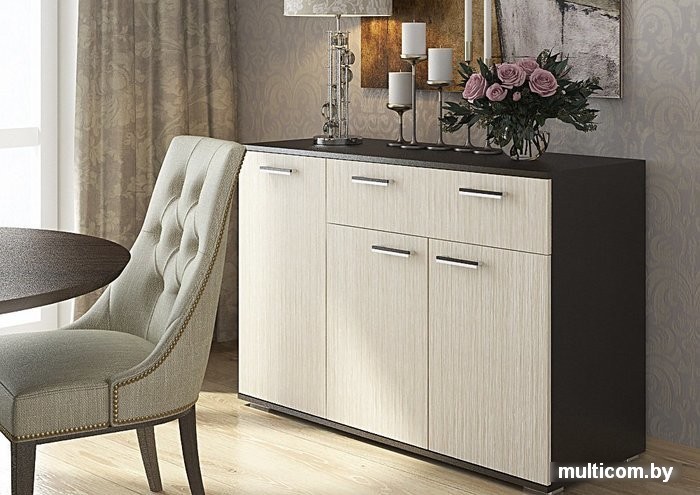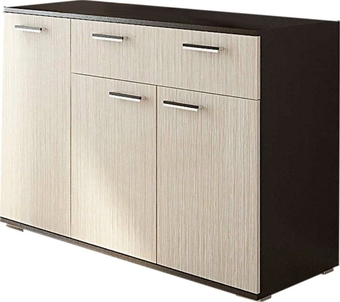 | Информация | Комод — привлекательный и современный, практичный и функциональный, будет уместен и востребован, где бы вы его не разместили. Комод разделен на три секции: горизонтальный выдвижной ящик, полки под ним за двумя распашными дверцами и закрытое одностворчатое отделение. Металлические ручки-скобы, светлый фасад в темном обрамлении придают комоду элегантный вид, он может украсить собой любое помещение, разместив при этом множество нужных вещей. |