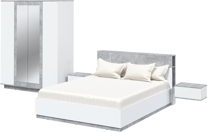| Состав комплекта | двуспальная кровать, тумба, шкаф |
