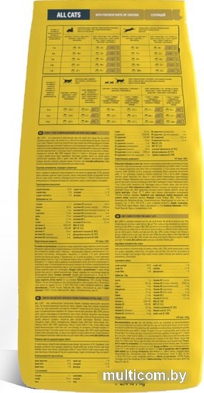 | Ингредиенты | Мясо и продукты животного происхождения (в том числе из курицы мин. 14 %), цельные зерна пшеницы, цельные зерна кукурузы, овощи, пшеничные отруби, кукурузный глютен, масла и жиры, рыба и рыбные субпродукты (источник Омега-3 и Омега-6 жирных кислот), пивные дрожжи, минеральные вещества и витамины, таурин, антиоксиданты, консервант. |