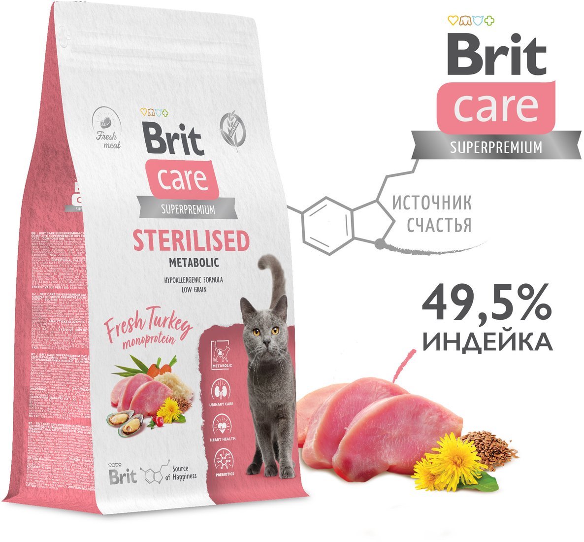 | Информация | - Полнорационный сухой корм супер-премиум класса с индейкой, специально разработанный для стерилизованных кошек. Он помогает улучшить обмен веществ, что особенно важно для питомцев с пониженной физической активностью. - Индейка в составе является естественным источником L-триптофана, известного как "гормон счастья". Корм содержит пониженное количество жира и увеличенное количество клетчатки, что способствует здоровому и активному обмену веществ. - Жирные кислоты из натуральных источников обеспечивают красоту шерсти и здоровье кожи. Свежие мясные ингредиенты поддерживают активность вашего питомца в течение всего дня. - Витамины, минералы и антиоксиданты в составе помогают поддерживать иммунитет, а растворимые и нерастворимые пищевые волокна способствуют здоровому пищеварению и поддерживают микрофлору кишечника. - Состав корма включает 49.5% мяса индейки, ячмень, цельнозерновой рис и другие полезные ингредиенты. Питательная ценность на 1 кг включает 32% сырого белка и 11% сырого жира. - Условия хранения: хранить при температуре от 0 до 25°С и относительной влажности не более 75%. Беречь от солнечных лучей. - Не забудьте ознакомиться с ассортиментом ветеринарных препаратов для заботы о здоровье вашего питомца! |