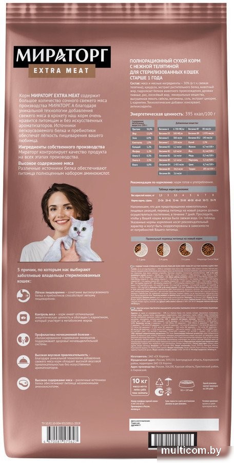 | Информация | - После кастрации и стерилизации у кошек возрастает риск ожирения и избыточной массы тела. Специальный корм «Extra Meat» с высокоусвояемой телятиной предлагает решение этой проблемы, обеспечивая питомца необходимыми питательными веществами. - В состав корма входит рыбий жир, богатый Омега-3 жирными кислотами, которые улучшают качество шерсти и кожи, а также поддерживают иммунитет. Это особенно важно для здоровья вашего любимца. - Добавление L-карнитина способствует эффективному жировому обмену, что помогает вашему питомцу поддерживать отличную физическую форму. Корм содержит 38% мясных ингредиентов, включая дегидрированное куриное мясо, свежую говядину и телятину, что делает его не только питательным, но и вкусным. - Сбалансированный состав включает кукурузу, рис, экстракт растительного белка и множество витаминов и минералов, необходимых для здоровья кошек. Это идеальный выбор для заботливых владельцев, которые хотят обеспечить своим питомцам качественное питание и предотвратить проблемы с весом. |
