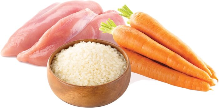 | Ингредиенты | Обезвоженный куриный белок (18,13% *), кукурузный глютен, рис (14,10%), кукурузная фольга, обезвоженный свиной белок, куриный жир, гороховое волокно, кукуруза, обезвоженный белок лосося, животный белок гидролизат, пивные дрожжи, сушеная морковь (1,01%), семена льна (1,01%), яйца, семена подорожника (0,50%), сушеные водоросли, юкка шидигера (0,13%). |