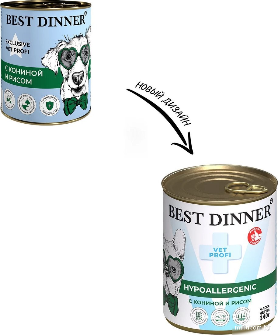 | Информация | -Влажный ветеринарный корм Best Dinner Vet Profi Hypoallergenic с кониной и рисом предназначен для собак с пищевой аллергией и обеспечивает полноценное питание с учетом особых потребностей животных. -Конина является основным источником белка, богатым аминокислотами, которые способствуют улучшению обменных процессов, пищеварения и поддержанию здоровой микрофлоры кишечника. -Рис обеспечивает организм сложными углеводами, а инулин из топинамбура выступает природным пребиотиком, стимулирующим рост полезных микроорганизмов. Юкка Шидигера помогает выводить токсины из организма. -Рыбий жир является источником энергии и Омега-3 жирных кислот, что способствует общему укреплению здоровья и поддержанию иммунитета. Читать дальше |
