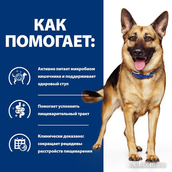 | Информация | ? Содержит высокое содержание клетчатки для нормализации пищеварения ? Технология ингредиентов ActivBiome+ для быстрого восстановления микробиома кишечника ? Помогает поддерживать здоровье при нарушениях пищеварения ? Разработан диетологами и ветеринарными специалистами Hill's ? Клинически доказано восстанавливает регулярный стул всего за 24 часа ?? Снижает риск рецидива |