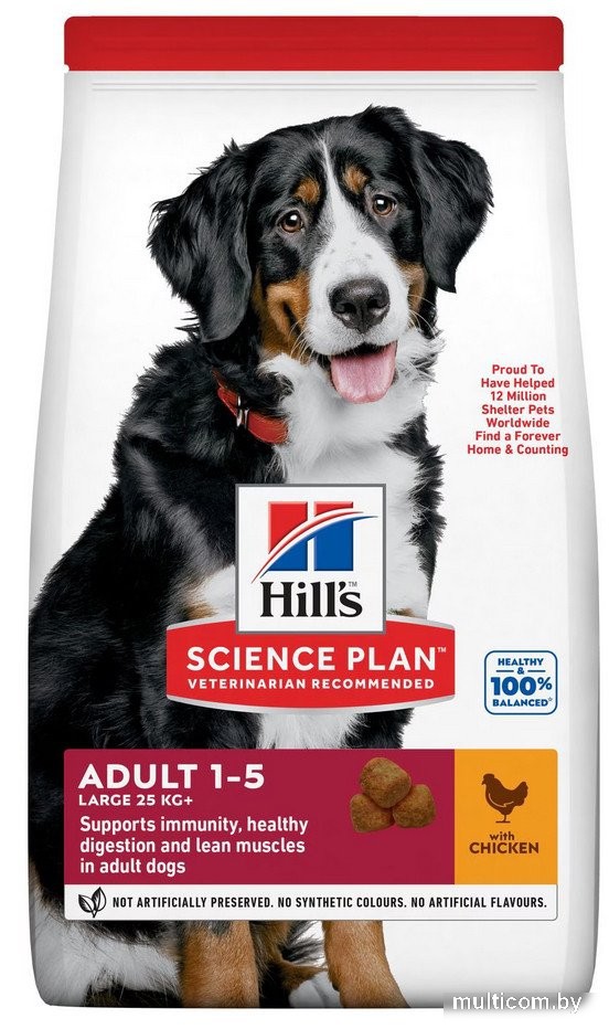 | Информация | - Корм для собак крупных пород Hill's Science Plan с курицей создан для удовлетворения энергетических потребностей взрослых собак в самом расцвете сил. Он поддерживает здоровье суставов благодаря глюкозамину и хондроитину. - Омега-6 жирные кислоты и витамин Е способствуют красивой коже и блестящей шерсти. Высококачественный белок помогает поддерживать мышечную массу, что особенно важно для активных собак. - Этот корм обладает великолепным вкусом и предназначен для того, чтобы ваша собака могла наслаждаться долгой и счастливой жизнью. Каждый момент, проведенный с вашим питомцем, уникален, и мы стремимся сделать их еще более запоминающимися. - Hill's Science Plan разрабатывается с использованием качественных ингредиентов и тщательно подобранных питательных веществ, чтобы обеспечить здоровье и счастье вашей собаки на протяжении всей жизни. - Мы гарантируем, что все ингредиенты в составе корма соответствуют строгим стандартам чистоты и питательной ценности. - Рационы Science Plan включают разнообразные сухие и влажные корма, которые удовлетворят все потребности вашей собаки и подарят ей радость. - Рекомендуется для взрослых собак крупных и гигантских пород в возрасте от 1 до 5 лет. Не подходит для щенков крупных пород, беременных или кормящих собак — для них лучше выбрать Hill's Science Plan для щенков крупных пород. |