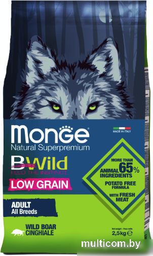 | Информация | ? Полнорационный корм для взрослых собак всех пород, изготовленный из мяса дикого кабана, идеально подходит в качестве ежедневного рациона для домашних питомцев. ? Корм содержит высокое количество белка и ограниченное количество злаков, без картофеля, что делает его идеальным для физиологических потребностей собак. ? Лесные ягоды и травы в составе корма являются источником питательных веществ, натуральной клетчатки и биологически активных компонентов. ? Оптимальный баланс Омега-3 и Омега-6 жирных кислот в корме способствует красоте шерсти и здоровью кожи собаки. ? Пребиотики М.О.S и Х.О.S в составе корма помогают сохранить естественный баланс кишечной микрофлоры и обеспечивают оптимальное усвоение питательных веществ. ? Корм не содержит ГМО, искусственных красителей и ароматизаторов. |