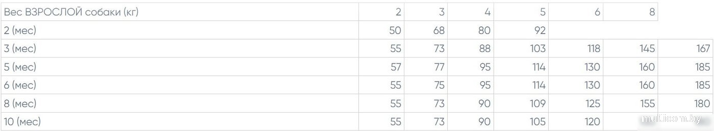 | Возраст | для щенков |