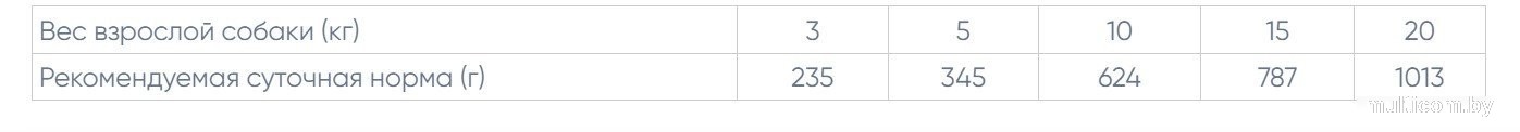 | Информация | - Полнорационный влажный корм с мясом для взрослых собак всех пород. - Аппетитные мясные кусочки в паштете для взрослых собак из отборных ингредиентов высокого качества с мясом телятины. - Особенная технология приготовления, путем смешивания мясных кусочков и паштета, придает корму необычную текстуру, что сможет удивить и заинтересовать вашего питомца. - Без ГМО, искусственных красителей и ароматизаторов. - Состав: мясо и мясные субпродукты (свежее мясо: утка 26%, курица 10%), злаки, масла и жиры, минеральные вещества. - Питательная ценность: сырой белок 8%, сырая клетчатка 0.5%, сырые масла и жиры 6.5%, сырая зола 2%, влажность 79%. - Питательные добавки в 1 кг: витамин D3 450 МЕ, витамин Е (альфа–токоферола ацетат) 15 мг, селен (селенит натрия 0.04 мг) 0.018 мг, марганец (сульфат марганца моногидрат 9 мг) 2.9 мг, цинк (оксид цинка 32 мг) 25.7 мг, медь (сульфат меди(II) пентагидрат 3.5 мг) 0.89 мг, железо (сульфат железа моногидрат 15 мг) 4.93 мг, йод (йодат кальция безводный 1.8 мг) 1.17 мг. - Нормы кормления: рекомендуемую суточную порцию можно разделить на 2–3 приема кормления. Индивидуальные потребности в питании могут отличаться в зависимости от размера, возраста и уровня активности животного. Данные предписания носят исключительно рекомендательный характер. - Для достижения оптимального состояния животного может потребоваться изменения рациона. - Переход на новый корм должен происходить в течение недели или более. - Всегда оставляйте постоянный доступ к чистой питьевой воде. - После вскрытия хранить в холодильнике и использовать в течение 2 дней. - Корм для домашних животных не предназначен для употребления в пищу человеку. - Ограничение: индивидуальная непереносимость компонентов состава. |