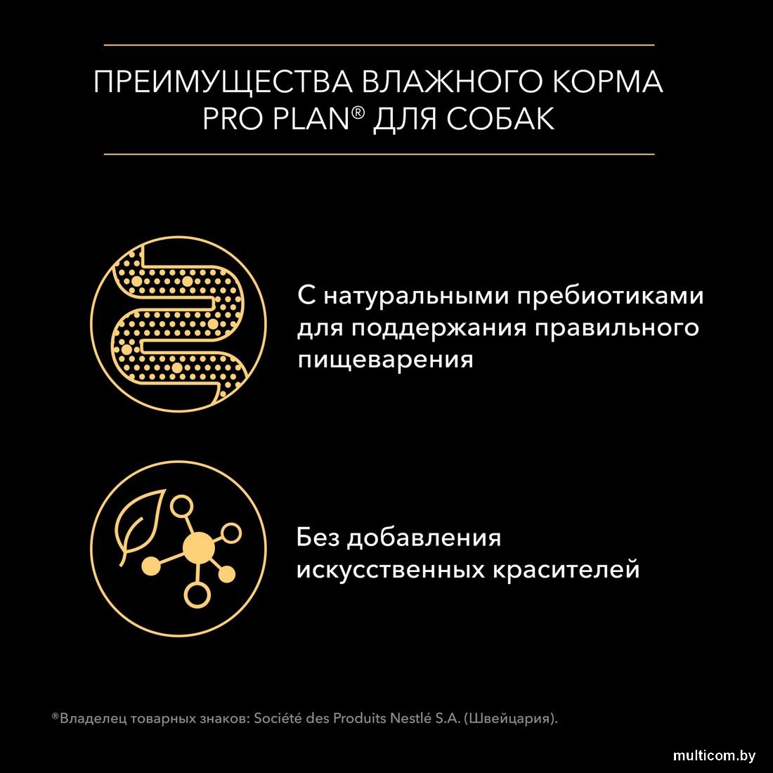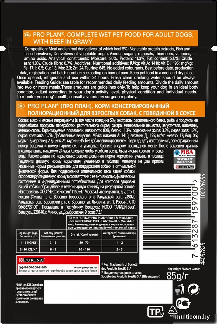| Информация | - Влажный корм для взрослых собак предлагает современное питание, которое положительно сказывается на здоровье вашего питомца на долгосрочной основе. Он учитывает индивидуальные потребности, обеспечивает высокую усвояемость питательных веществ и поддерживает естественную защиту и здоровое пищеварение. - Комбинируйте влажные и сухие корма для разнообразия в рационе вашего любимца и поддержания оптимального водного баланса. Этот корм не содержит искусственных красителей и включает натуральные пребиотики для улучшения пищеварения. - Состав корма включает мясо и продукты его переработки (включая 5% говядины), экстракты растительного белка, рыбу и ее переработанные продукты, минеральные вещества, витамины и аминокислоты. - Гарантируемые показатели: влажность — 80%, белок — 11.3%, жир — 3.5%, зола — 1.8%, клетчатка — 0.7%. Добавленные вещества: витамин А, Д3, железо, йод, медь, марганец, цинк и таурин. - Рекомендуется разделить дневную норму кормления на минимум два приема. Корректируйте порции в зависимости от активности и состояния вашей собаки. Регулярно проверяйте здоровье питомца у ветеринара и следите за наличием свежей питьевой воды. - Храните корм в сухом и прохладном месте. Упаковка не предназначена для игр, поэтому храните ее в недоступном для детей и животных месте. - Ознакомьтесь с ассортиментом ветеринарных препаратов для заботы о здоровье вашего питомца, перейдя по ссылке. |