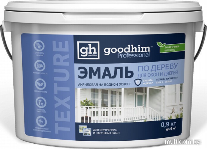 | Информация | Назначение и область применения: ЭМАЛЬ ПО ДЕРЕВУ ДЛЯ ОКОН И ДВЕРЕЙ GOODHIM TEXTURE 655 акриловая, предназначена для защитно-декоративной обработка деревянных окон и дверей внутри и снаружи зданий. Подходит для уличных конструкций, а также потолков, стен, мебели, из материалов на основе древесины (ДВП, ДСП, фанера и пр.). Основные свойства: Легко наносится, равномерно распределяется по поверхности. Образует белоснежное полуглянцевое шелковистое покрытие, устойчивое к механическим воздействиям и загрязнениям. Имеет водную основу. Не имеет запаха. Быстро сохнет. Образует паропроницаемое «дышащее» покрытие. Стойкая к бытовым чистящим средствам. Экологически безопасна, может применяться в детских, спортивных, лечебных и других учреждениях. Цвет покрытия: супербелый. Колеруется в светлые тона колеровочными пастами и красками для водоразбавляемых систем (база А). Способ применения:Обрабатываемая поверхность должна быть сухой и не иметь загрязнений: очищена от грязи, пыли и жировых загрязнений, ранее окрашенные поверхности – от непрочно держащегося старого покрытия. Предварительное грунтование не требуется. Эмаль перед нанесением тщательно перемешать. Для первого (грунтовочного) слоя эмаль разбавить водой, не более 5%. Для следующего слоя не разбавлять. Наносить эмаль следует кистью, валиком или краскораспылителем в 2 слоя при температуре от +10°С, относительная влажность воздуха менее 80%. Прогнозируемый срок службы покрытия снаружи помещений - не менее 6 лет, срок службы покрытия внутри помещений – не менее 7лет. Расход рабочего раствора: на подготовленную поверхность составляет 100 – 120 г/м? при одинарном нанесении в зависимости от породы древесины и ее плотности. Время высыхания: высыхание каждого слоя эмали при температуре 200С – 220С и относительной влажности воздуха не более 65% - 2 часа. Покрытие будет готово к эксплуатации через 12 часов, полное высыхание через 24 часа. Через 5 дней после окраски готовую поверхность можно очищать нейтральными моющими средствами, с последующей обработкой чистой водой. Очистка инструмента: Сразу после окончания работ инструмент промыть водой. Упаковка и фасовка: Пластиковое ведро 0,9 кг; 2,2 кг. Хранение и транспортировка: В герметично закрытой таре при температуре не ниже 0 °С, вдали от прямых солнечных лучей, в недоступном для детей месте. Допускается кратковременное транспортирование и хранение при температуре до -20 0С не более одного месяца или до пяти циклов замораживания - оттаивания. После оттаивания при комнатной температуре без дополнительного нагрева эмаль сохраняет первоначальные свойства. Срок годности 24 месяца с даты изготовления. Меры безопасности: При попадании на кожу смыть водой. Избегать попадания в глаза. При попадании в глаза - немедленно промыть большим количеством воды. При работе с эмалью использовать резиновые перчатки. Беречь от детей!!! Помещения вентилировать, остатки не сливать в систему канализации. Утилизировать в закрытом виде как бытовой мусор. Класс опасности — IV («малоопасно») по ГОСТ 12.1.0076. Состав: Акриловая дисперсии, диоксид титана, антисептические добавки, наполнители, вода очищенная. Произведено: по ТУ 2313-030-03856078-2016 Бренд: GOODHIM |