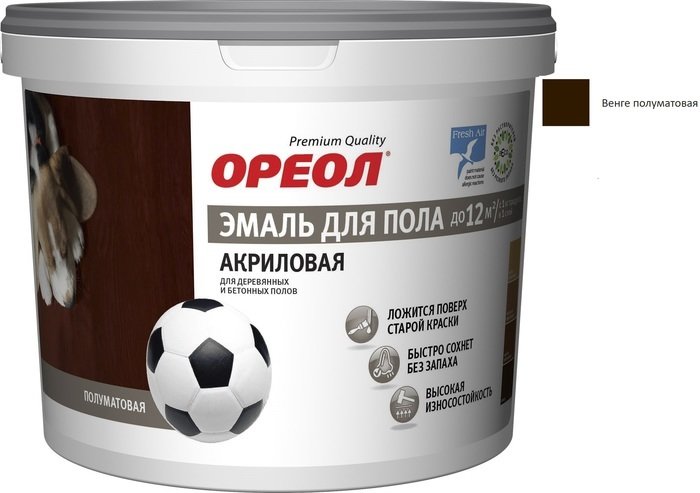 Эмаль Ореол Акриловая полуматовая для пола 0.9 кг (венге)