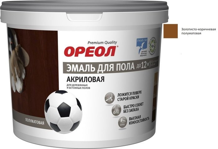 Эмаль Ореол Акриловая полуматовая для пола 0.9 кг (золотисто-коричневый)