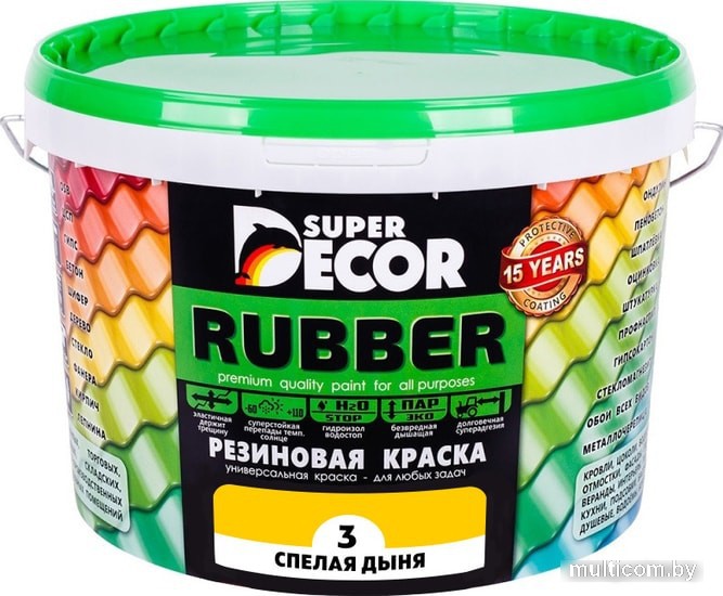 | Информация | Описание.Высокоэластичная краска Super Decor ВД-АК-103Готовая к употреблению универсальная для наружных и внутренних работ.СВОЙСТВА:- матовая краска на основе финской (CH POLYMERS OY) акрилатной дисперсии;- обладает хорошей адгезией, высокой укрывистостью;- повышенная устойчивость к неблагоприятным условиям эксплуатации (сырость, перепады температур и т.д.); можно наносить в сырых помещениях;- после отвердения сохраняет свои свойства при температуре от -50°С до + 60°С;- водонепроницаема, но позволяет поверхности «дышать»;- высокая износоустойчивость (мытьё);- легко наносится, быстро сохнет;- не содержит токсичных и горючих растворителей, безвредна, без запаха;- щелочестойкая, стойкая к мытью мыльным раствором.ОБЛАСТЬ ПРИМЕНЕНИЯ:- для первичной и ремонтной окраски оштукатуренных, бетонных, зашпатлеванных, кирпичных, оклеенных обоями, гипсокартонных, древесностружечных, древесноволокнистых поверхностей, дереву, черепице, асфальту, асбоцементу и оцинкованной стали;- для окраски поверхностей, окрашенных ранее алкидными, масляными и другими красками, подготовленных согласно инструкции;- не применять для окраски полов.НАНЕСЕНИЕ:- перед применением краску тщательно перемешать;- разбавление не рекомендуется;- наносить в 2-3 слоя валиком, кистью или распылением при температуре не менее +5 °С на сухую поверхность;- регулярно перемешивайте краску во время работы;- следующий слой наносить после полного высыхания предыдущего;- инструмент промыть водой сразу после окончания работы.ВЛАЖНАЯ ОБРАБОТКА :- перед влажной обработкой дать краске набрать окончательную твердость в течение 7 дней;- мыть мыльными растворами;- можно обрабатывать антисептиком.Время высыхания: "на отлип" 30 — 60 минут, до твердого состояния 1 — 2 часа (в зависимости от температуры и влажности)Примерный расход краски:110 гр/м2 — 130 гр/м2 окрашенная или прогрунтованная поверхность140 гр/м2 — 180 гр/м2 шпатлёванная поверхность, обои, гипсокартон, ДСП, ДВП200 гр/м2 и более — бетон, штукатуркаКолеровка по каталогу “Monicolor Nova”, или любыми колерными пастами подходящими для водоэмульсионных красок. |