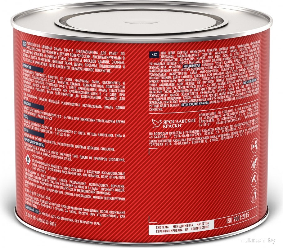 | Информация | Эмаль ПФ-115 универсальная сверхпрочная предназначена для окрашивания металлических, деревянных и бетонных поверхностей, эксплуатируемых в атмосферных условиях и внутри помещений (наружные стены, элементы фасадов, скамьи, ограды, оконные рамы, двери, проемы, подоконники и т. д.) После высыхание образует особо прочное полуматовое покрытие, стойкое к атмосферным воздействиям и перепадам температур.Преимущества: сверхпрочная; атмосферостойкая; для наружных и внутренних работ. |