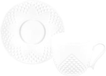 | Информация | Чайная пара состоит из 2-х предметов: чашка на 260 мл и блюдце диаметром 14 см. Используйте набор как чайный или кофейный. Чашка с блюдцем помогут провести множество вкусных завтраков с капучино или латте или уютных вечеров с любимым горячим напитком. Набор выполнен из высококачественного белого фарфора и украшен декоративными рельефными узорами. Фарфоровая посуда отличается от керамики повышенной плотностью. Фарфор не впитывает цвет кофе или чая и не деформируется от влаги, чему может быть подвержена керамическая посуда. Кружку и тарелку можно использовать в СВЧ (микроволновой печи) и ПММ (посудомоечной машине). |