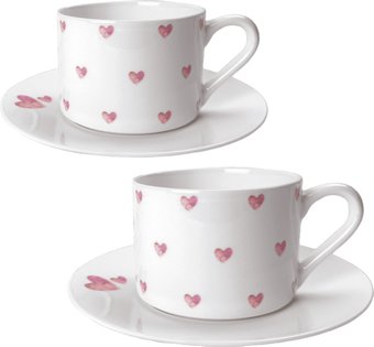| Информация | - Фарфор на протяжении веков привлекает внимание коллекционеров и ценителей качественной декоративной посуды. Он символизирует роскошь и утонченный вкус, радуя глаз своим великолепным внешним видом. Изделия из фарфора сохраняют свою красоту и функциональность на протяжении многих лет, что делает их идеальными как для повседневного использования, так и для особых случаев. - Этот комплект из двух чайных пар очаровывает своей нежностью и изысканностью. Белоснежный костяной фарфор украшен изящными сердечками, выполненными в акварельной технике, создавая атмосферу романтики. Легкие розовые оттенки маленьких сердечек придают каждому чаепитию особое настроение. Классическая цилиндрическая форма чашки с удобной ручкой обеспечивает комфорт, а блюдце с двумя сердечками создает гармоничный ансамбль. Такой набор станет отличным выбором для создания романтической атмосферы или подарка для любимого человека. - Набор кофейных пар на 2 персоны идеально подходит для утренних чаепитий или вечернего отдыха. Чайный сервиз обладает уникальной текстурой и благородным блеском, добавляя нотку утонченности к вашей чайной церемонии. - Изделия подходят для использования в СВЧ и ПММ, что делает их практичными в повседневной жизни. - Прекрасный вариант сервировки стола как для себя, так и для близких, как дома, так и на работе. В коллекции также представлены кружки, закусочные и обеденные тарелки, сервировочные блюда. Все предметы упакованы в фирменную картонную коробку. - Фарфоровые чашки с блюдцем станут превосходным выбором, подчеркивающим ваш изысканный вкус и внимание к деталям. |