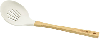 | Информация | Шумовка силиконовая белого цвета с бамбуковой ручкой. Ручка имеет отвертие для подвеса на крючок или рейлинг. Не содержит бисфенол А и фталаты. Выдерживает температурный режим от -20С до +220С. |