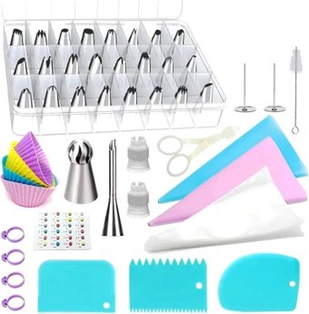 | Информация | - Состав набора: - насадки (24 шт.), - ножницы, - щеточка, - гвоздь (2 шт.), - мешок (2 шт.), - одноразовый мешок (10 шт.), - формочка для кекса (4 шт.), - лопатка (3 шт.), - стяжка (4 шт.), - коробка, - переходник (2 шт.), - горловина (2 шт.) - Обратите внимание на полный состав набора! |