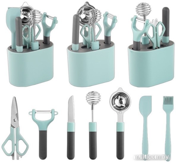 | Состав набора | венчик, кисть, ложка, ножницы кухонные, овощечистка, подставка, шумовка |