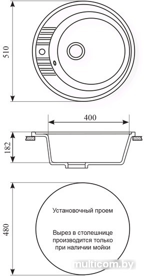 | Способ установки | врезная на столешницу |
