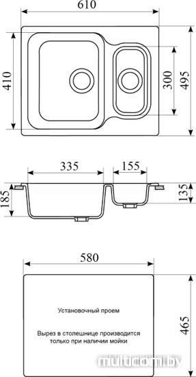 | Ширина мойки | 61 см |