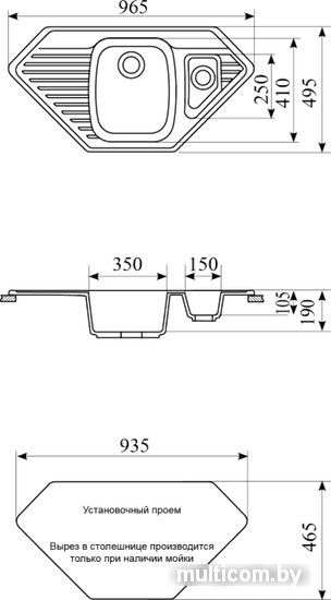 | Способ установки | врезная на столешницу |